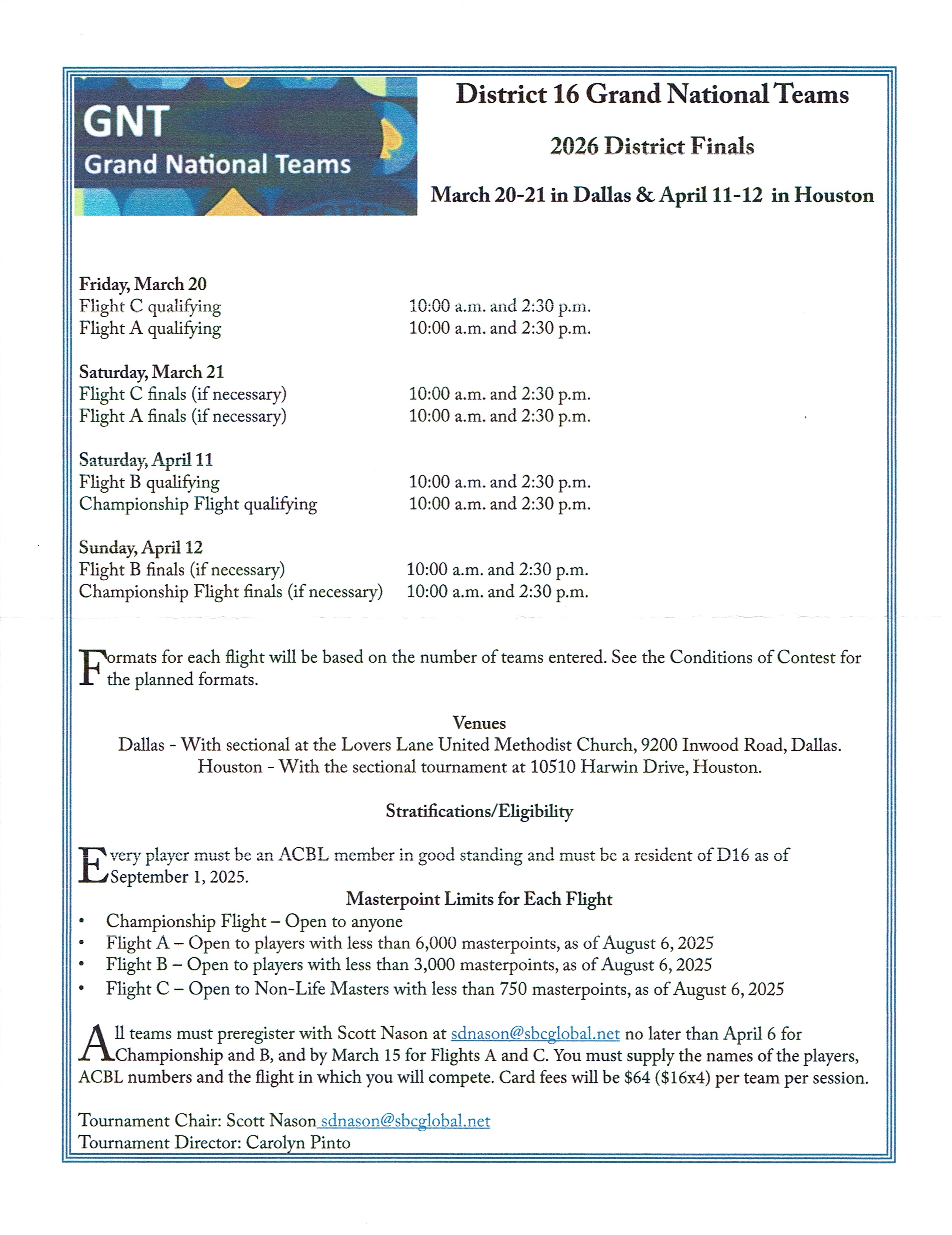 In an effort to assist unit members who want to help in the search for new locations for Unit 174's sectional tournaments, the board has compiled a list of requirements for a location. The list is filed under Unit Pages on the Unit 174 website.